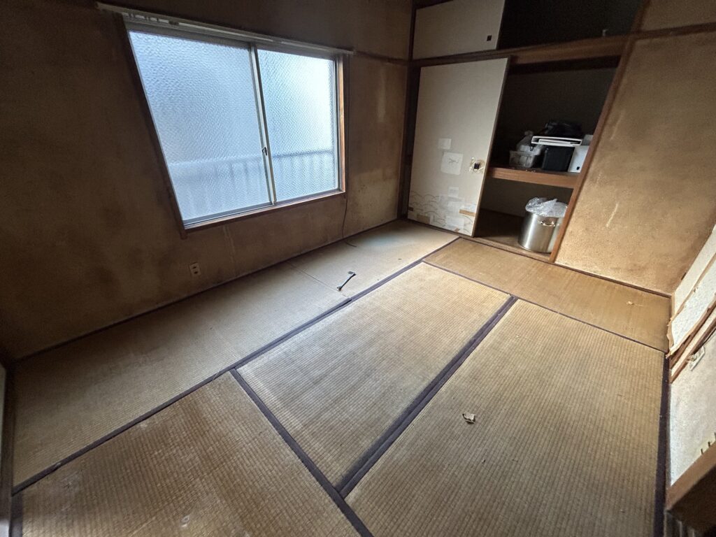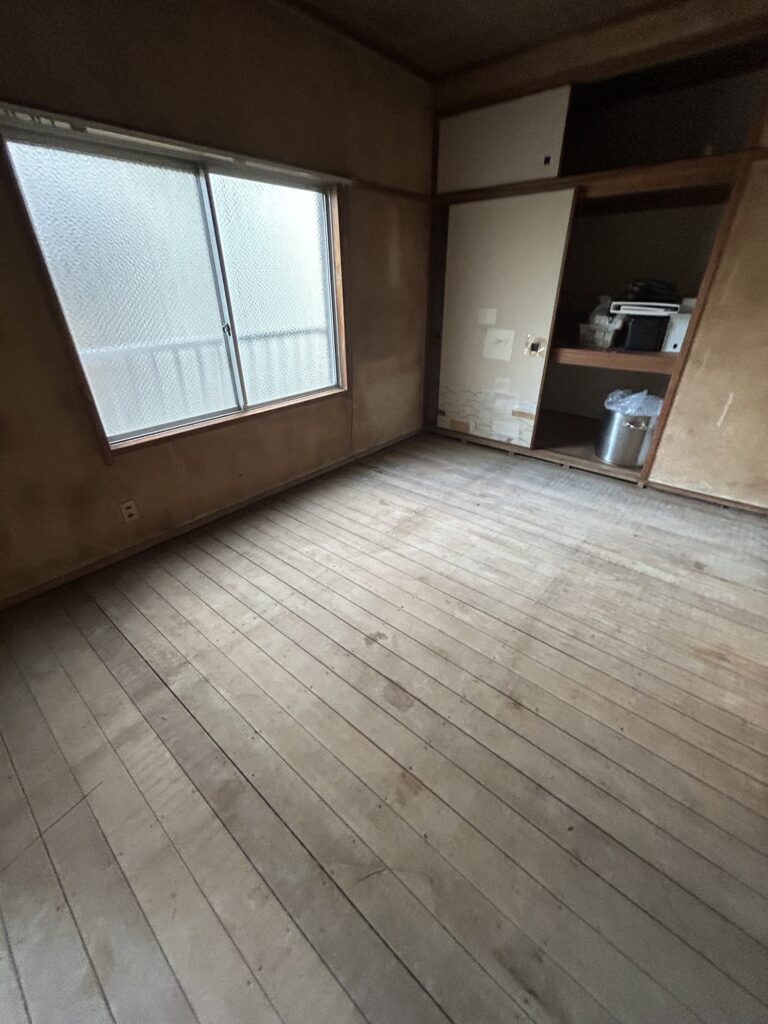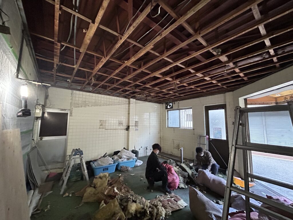 店舗様改装工事 2026-01-22 | コメントはまだありません 以前の現場も進行していますが、福島にて新しい現場へ ひとまず天井裏の様子がみたかったのでこちらをこう フード関係と、天井板を剥がしました これで天井裏の様子を見ることができました。 ここから再度設計待ちです ちなみに2階は事務所になっており これを ひとまず畳処分です こここら床を上げてシート貼りで納めていく予定です どうなるか楽しみです 未分類